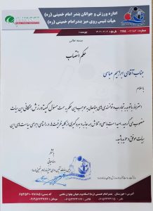 به گزارش بام جنوب، طی حکمی رسمی از سوی رضا حیاتی، رئیس هیات تنیس روی میز شهرستان بندرامام(ره)، آقای ابراهیم عباسی به عنوان مسئول کمیته ورزش همگانی این هیات منصوب و معرفی شد.
