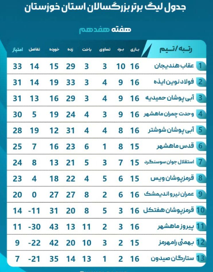 گفتنی است تیم استقلال جوان سوسنگرد، تیم هفتم جدول، در این هفته به دلیل قرعه استراحت داشت.