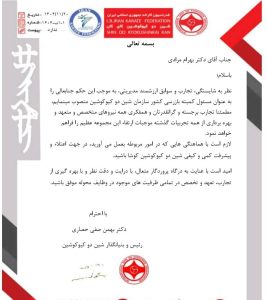 صدور سه حکم رسمی برای دکتر بهرام مرادی در سازمان شیندو کیوکوشین