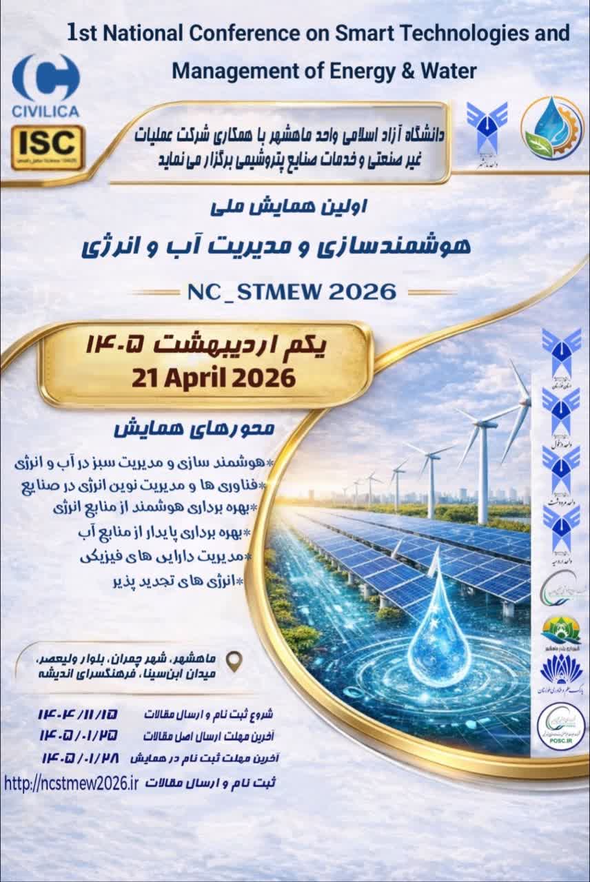 به گزارش خبرنگار بام جنوب از بندرماهشهر، نخستین همایش ملی «هوشمندسازی و مدیریت آب و انرژی» روز یکم اردیبهشت‌ماه سال ۱۴۰۵ به میزبانی شهرستان بندرماهشهر برگزار می‌شود. این همایش با تمرکز بر بهره‌گیری از فناوری‌های نوین و راهکارهای هوشمند در مدیریت بهینه منابع آب و انرژی، بستری برای تبادل تجربیات علمی و صنعتی میان پژوهشگران، دانشگاهیان و فعالان صنعت فراهم می‌کند.